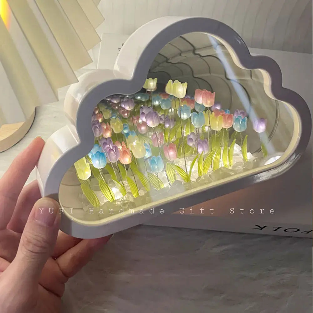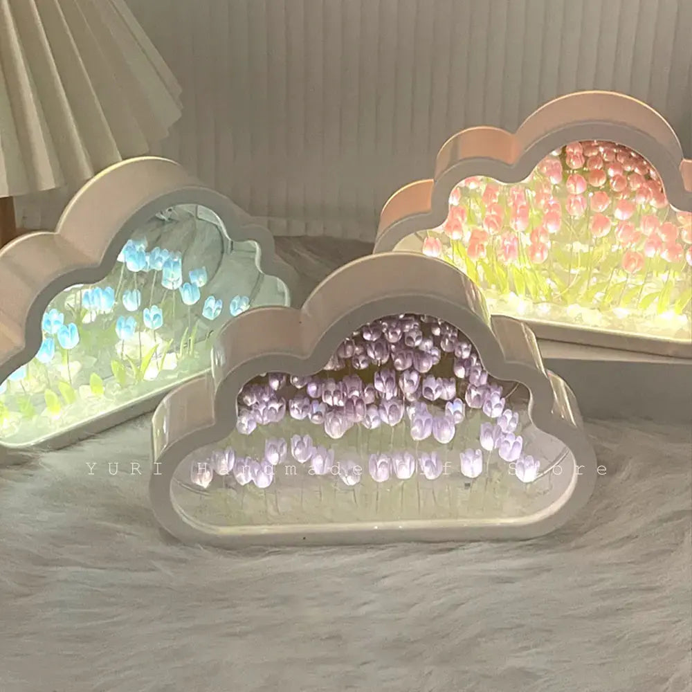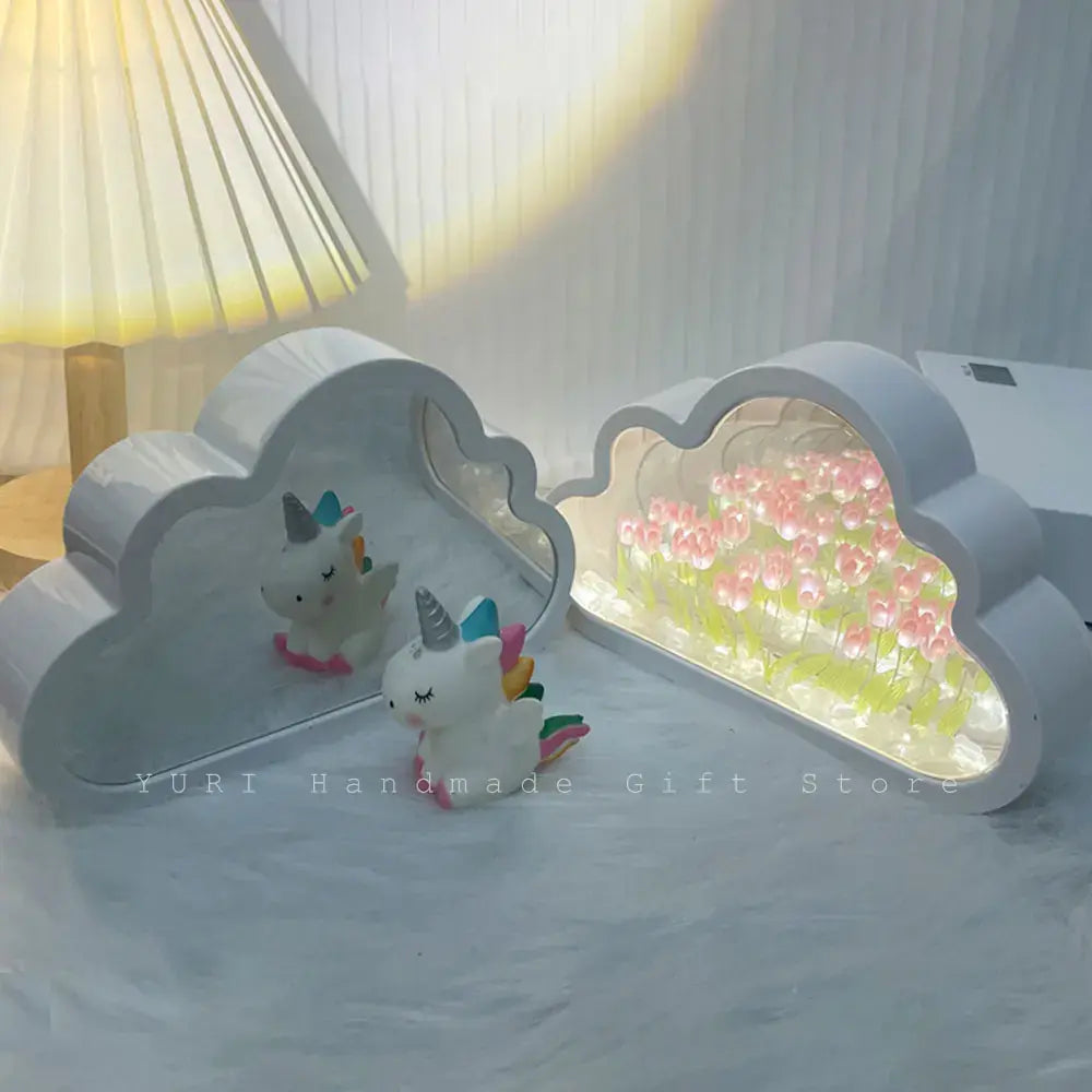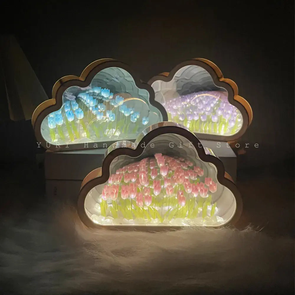 Experience the beauty of handmade craftsmanship with our cloud tulip mirror lamp, a versatile decor piece for any occasion. Whether used as a night light or a decorative accent, its exquisite design adds a touch of elegance to your space. Surprise your loved ones with this thoughtful gift, perfect for birthdays or Valentine's Day.